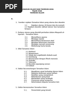 Kelahiran dan perkembangan tamadun islam1. Faktor faktor kecemerlangan tamadun islam 30 keyakinan umat terhadap ajaran islam ajaran al quran mengajak umat islam mempelajari pelbagai ilmu. Sepanjang tempoh tersebut, andalus menjadi kawasan tumpuan utama benua eropah. Islam membenarkan sebarang asas pencapaian tamadun lain untuk membantu mengukuhkan lagi tamadun islam dengan syarat tidak bercanggah atau bertentangan dari aspek aqidah, akhlak dan syariah islam. Tamadun islam & tamadun asia (titas) 1. Justeru, dalam kertas konsep ini, penekanan diberikan kepada faktor utama yang memacu kegemilangan andalus; Masyarakat yang tidak bertamadun telah melalui zaman kecemerlangan, sesebuah tamadun. Dan islam telah mengubah, memulihkan dan menyempurnakan agama tauhid warisan nabi. Ajaran islam tidak membezakan kedudukan, pangkat atau harta kerana setiap manusia. 2 2 ciri ciri tamadun islam 1. Sumbangan islam dalam matematik astronomi dan perubatan. Antara faktor faktor tersebut adalah seperti berikut. Tamadun islam, faktor kemajuan, pembangunan insan, budaya ilmu, keadilan.